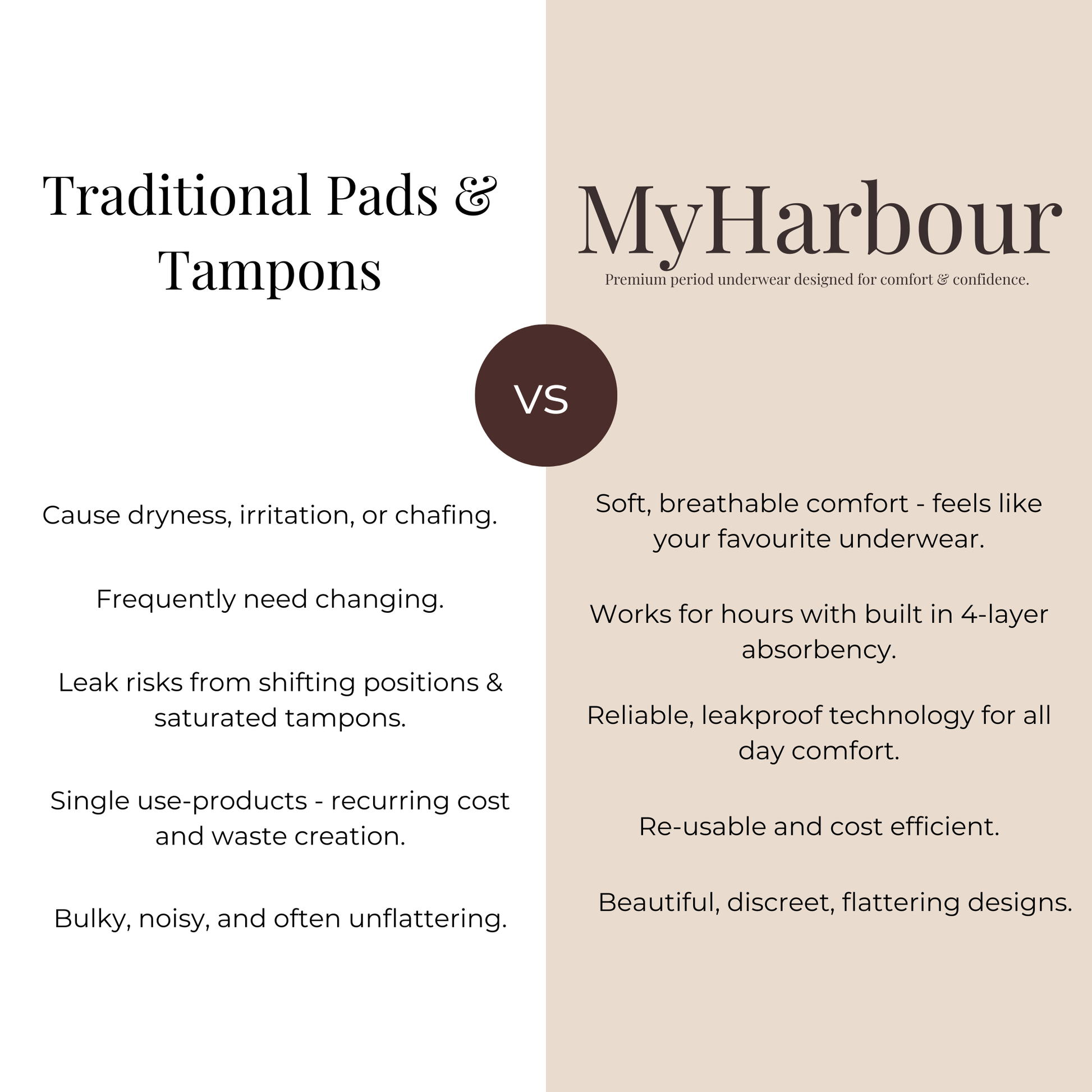 With proper care, your MyHarbour underwear will last up to 2 years - saving waste, money, and the planet.